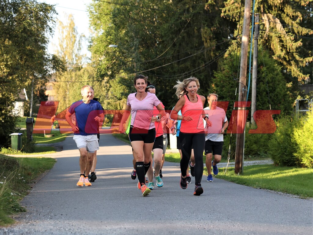Merete Støverud Stokke fremst under intervalltrening med Kondistreninga Nes i august 2021
