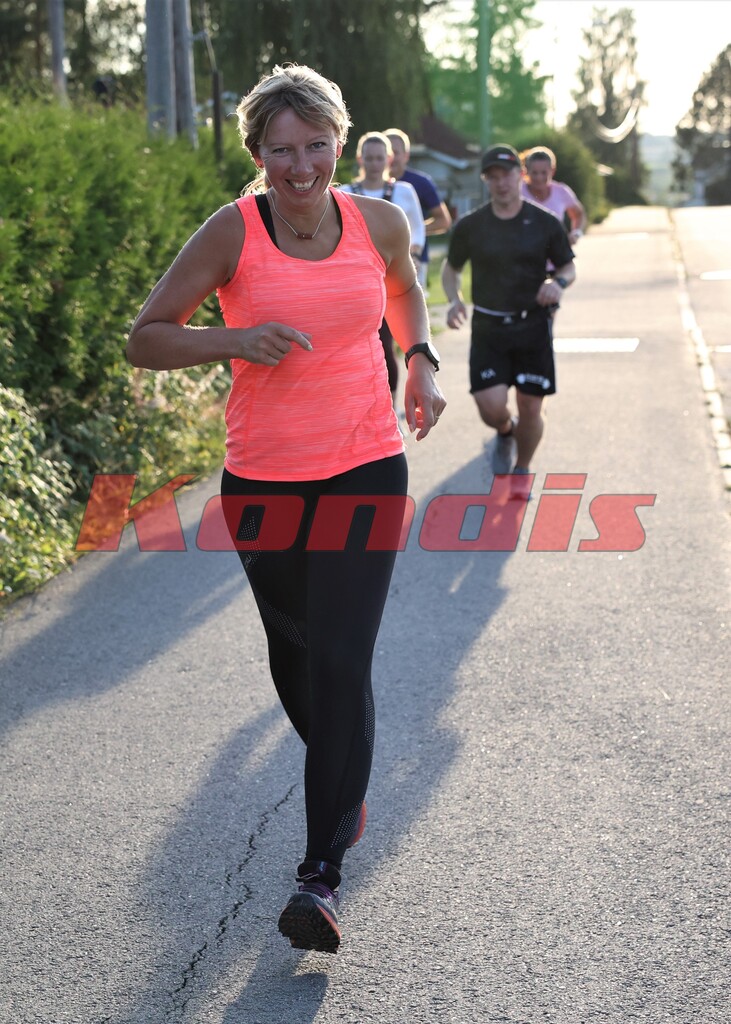 Merete Støverud Stokke fremst under intervalltrening med Kondistreninga Nes i august 2021