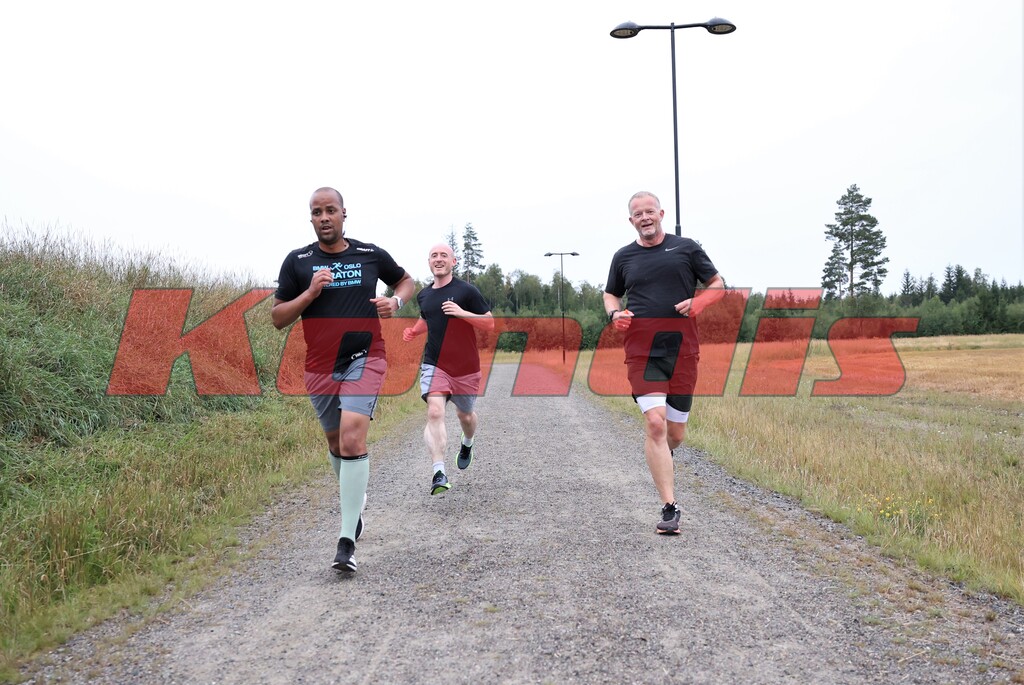 F.v.: Sverre Waagø, Mahad Awaleh og Luke Rowland på intervalltrening med Kondistreninga Jessheim