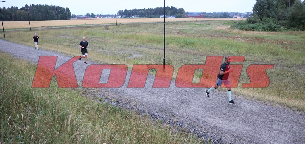 Mahad Awaleh (fremst), Sverre Waagø og Luke Rowland på intervalltrening med Kondistreninga Jessheim